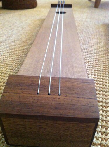 Tonhölzern, der mit drei versilbert umsponnenen Metall-Saiten bespannt